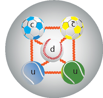 1964年美国物理学家盖尔曼(Murray Gell-Mann)提出“夸克模型”,认为质子和中子不是基本粒子,而是由三个夸克组成的,这类粒子统称为重子,另外一类被称为介子的粒子则是由一对正反夸克组成的。“夸克模型”的建立使人类对物质结构的认识达到了全新的高度,盖尔曼因此于1969年获得了诺贝尔物理学奖。除了已知类型的重子和介子,盖尔曼在论文中还提到了可能存在奇特类型的粒子,如在介子或重子中加入一对正反夸克形成四夸克介子或五夸克重子。