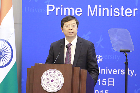 莫迪总理在演讲结束后回答了现场同学的提问。