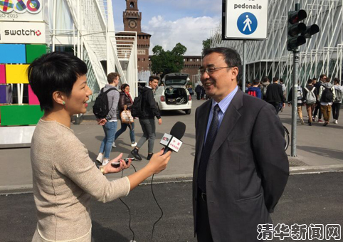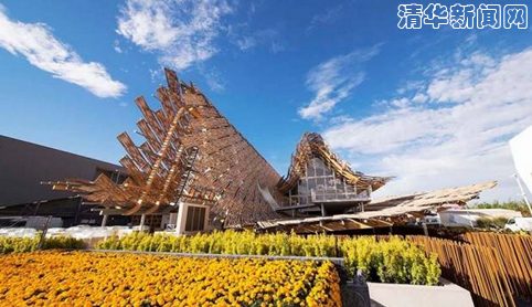 清华新闻网5月5日电 意大利米兰世博会于2015年5月1日开幕, 国家主席习近平通过视频发表欢迎辞。当地时间上午10时,在形似金色麦浪的中国国家馆(以下简称“中国馆”)主体建筑外,中外嘉宾在红墙掩映、琉璃溢彩、花木繁盛的小舞台参加了简单而庄重的开馆剪彩仪式。