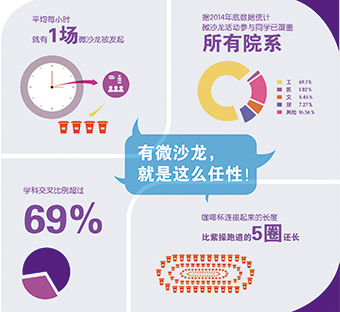 数据显示,2014年6月共发起102场微沙龙,10月份便增加到347场。“我们要让微沙龙成为学生讨论问题和跨学科交流的一种习惯和常态———这个目标不是‘未来时’,而成为一种渐行渐进的‘现在时’了。”贾龙说。