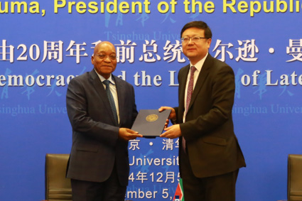 当天的清华主楼后厅座无虚席,祖马在演讲中回顾了南非20年的发展历程,并与清华师生分享了他对于中南关系和两国合作的看法。