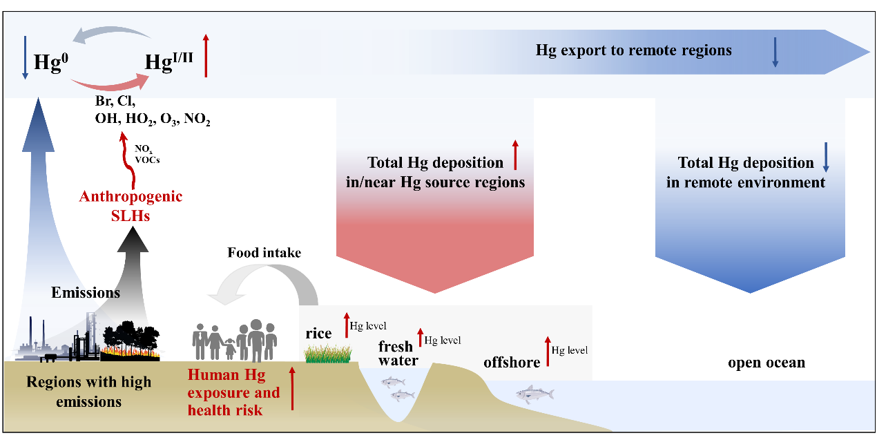 清华新闻网3月15日电 汞(Hg)是一种全球性的持久有毒污染物,其通过甲基化以及在食物链中的富集,最终进入人类食物中从而引起婴幼儿神经系统发育迟缓和成人致死性心脏病发作等一系列健康效应。大气中的Hg主要以零价汞(Hg0)和氧化态汞(HgⅠ,Ⅱ)形式存在,其沉降是Hg进入生态系统和食物链的主要途径。相比于Hg0,HgⅠ,Ⅱ的大气寿命更短,会更多沉降在汞排放大的陆地地区及近海海域。因此大气Hg氧化过程会影响全球Hg沉降分布及其健康效应。