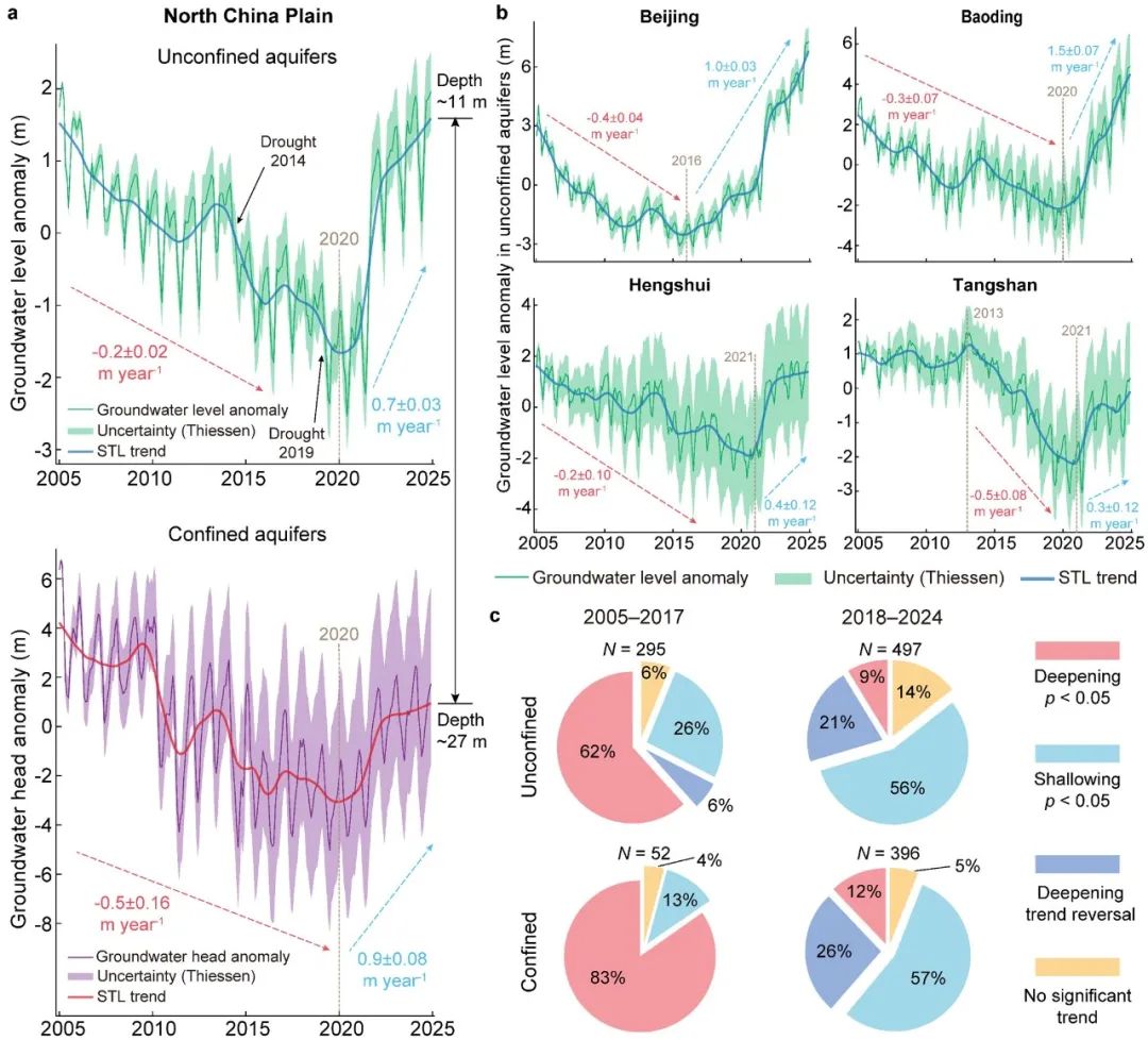 相关研究成果以“人类干预下前所未有的大范围含水层恢复”(Unprecedented large-scale aquifer recovery through human intervention)为题,于8月7日发表于《自然·通讯》(Nature Communications)。