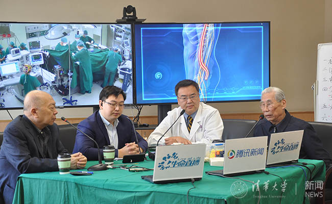 生命直播解说间内的医学专家。(左起:刘恩重、邓侃、王劲、赵雅度)