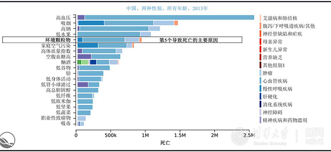 据2015年10月发表于英国医学杂志《柳叶刀》上的全球疾病负担(GBD)2013 估计,2013 年,暴露于环境细颗粒物空气污染(PM2.5)导致中国有91.6 万人过早死亡。“GBD 是迄今为止最大和最全面的衡量全球流行病水平和趋势的项目(www.healthdata.org/gbd)。基于中国数据,我们发现,室外空气污染在导致中国居民过早死亡的主要原因中排在第五位。”中国疾病预防控制中心国家非传染性及慢性疾病控制预防中心副主任、2013年中国GBD分析报告的主要作者周脉耕这样表示。
