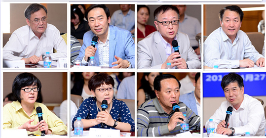 从左上到右下依次为:经济管理学院院长钱颖一、清华企业家协会TEEC创始主席邓锋、医学院常务副院长鲁白、经济管理学院党委书记高建、研究生院副院长高虹、公共管理学院党委副书记谢矜、启迪控股有限公司董事长梅萌、环境学院副院长左剑恶在共建商讨会上发言。