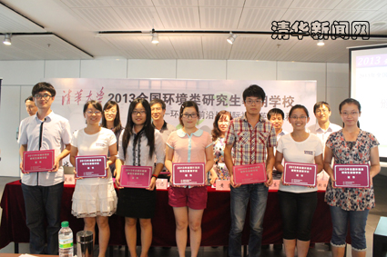 在随后举行的结业典礼上,厦门大学学员陈聪聪代表全体学员总结了在暑期学校期间的收获;助教代表只艳带领大家重温了这14天紧张而充实的学习生活。随后,清华环境学院教授黄霞宣读了学术委员会关于考核结果和优秀学员表彰的决定:82名学员考核结业,授予8名同学“优秀学员”称号和环境英才奖学金,给予3名家境贫寒的同学环境英才助学金资助,给予1名新疆维吾尔族学员少数民族环境英才助学金资助。