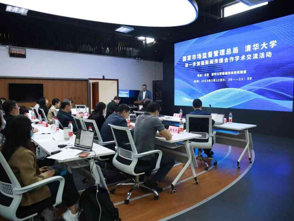 新闻与传播学院院长周庆安介绍了新闻与传播学院的基本情况、育人规模以及在学科规划建设方面的设想,聚焦“中国式现代化与国际传播能力建设”主题作报告。新闻与传播学院副院长张铮、副教授蒋俏蕾围绕“人工智能等技术对媒体传播领域影响”“智能技术与媒介市场运动”主题作报告。全球发展与健康传播中心秘书长苏婧重点介绍了当前市场监管领域所面临的整体舆论环境、当前新闻宣传和意识形态工作的重点内容以及对下一步合作的未来展望。