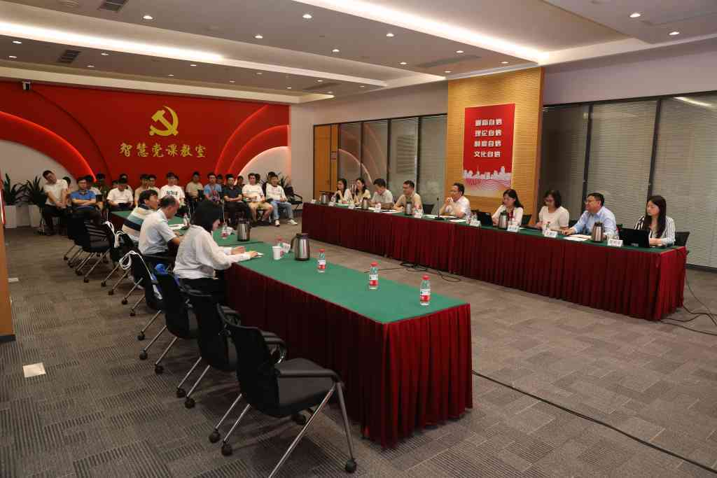 8月4日上午,在上海核工院B座大厦,上海核工院党委书记、工会主席叶元伟,人力资源部主任贺湘炼,人力资源部副主任王德斌等公司负责人及技术专家接待了实践支队一行,并带领支队成员参观了上海核工院科技展厅与党建阵地展厅,学习“国和一号”对国际先进三代压水堆AP1000的引进、消化吸收再创新的过程和公司党建文化。