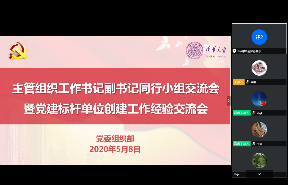 清华新闻网5月12日电 5月8日上午,党委组织部通过网络会议的方式举办第二场组工同行小组交流会暨党建标杆单位创建工作经验交流会。校党委常委、组织部部长许庆红出席会议并讲话,组织部副部长邹欣主持会议。来自24个二级单位主管组织工作的党委书记(副书记)参加会议。