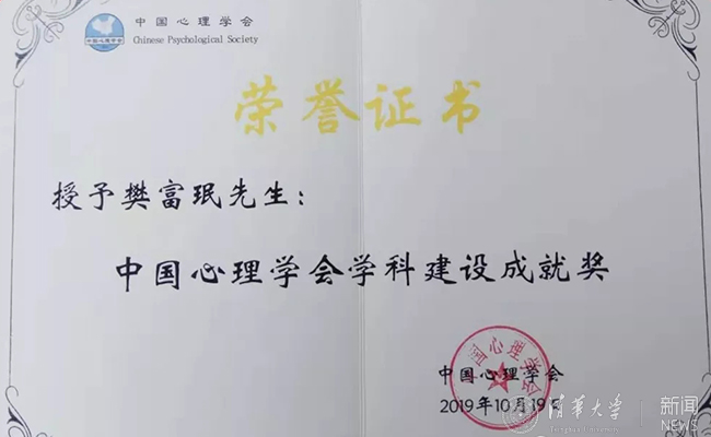 樊富珉荣获“中国心理学会学科建设成就奖”