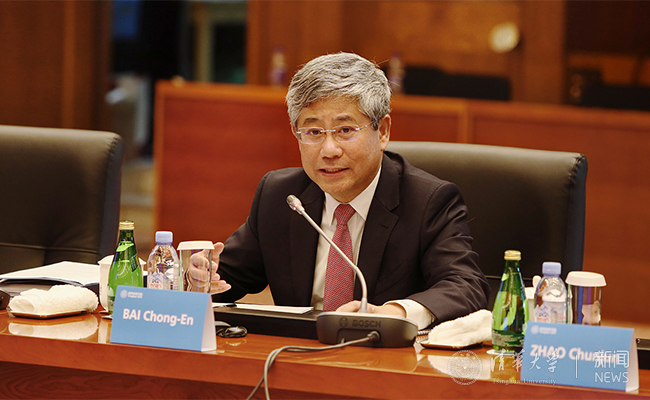 经管学院院长白重恩向顾问委员会汇报了过去一年学院工作进展,包括深圳院区筹建工作、建院35周年活动、资源整合工作、顾问委员相关活动、新楼建设工作等方面内容。