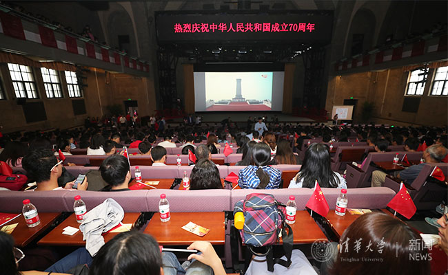 除大礼堂外,学校还在第一教学楼、西阶教室开设了直播分会场。与直播信号同唱《国歌》和《歌唱祖国》,现场师生备受鼓舞;步调整齐的受阅士兵、性能精良的受阅装备、翱翔九天的空中雄鹰,气势恢宏的阅兵仪式博得了大家的阵阵掌声;“建国创业”“改革开放”“伟大复兴”,壮观热烈的群众游行方阵依次前行,引得大家阵阵喝彩。当清华师生组成的“伟大复兴”游行方阵走过主席台时,全场顿时掌声雷鸣,由衷的自豪之情洋溢在每个清华人的脸庞……回望沧桑巨变,环顾伟大盛世,憧憬圆梦复兴,清华师生肩负使命与责任,加满油、把稳舵、鼓足劲,将以一往无前的奋斗,书写新的更加壮丽的辉煌篇章!
