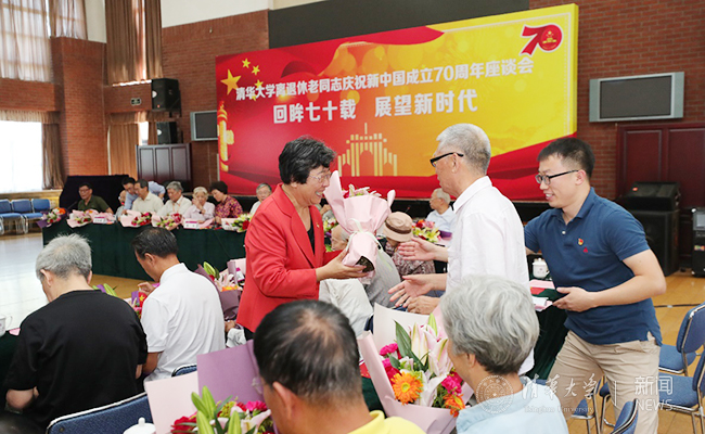 为庆祝新中国成立70周年,党中央、国务院和中央军委为建国前参加革命工作的老战士老同志和建国后获得过国家级表彰奖励的人员颁发“庆祝中华人民共和国成立70周年”纪念章。活动上,陈旭为我校9位离休干部代表颁发了纪念章。陈旭、姜胜耀、韩景阳代表学校党委为所有到场老同志送上鲜花。