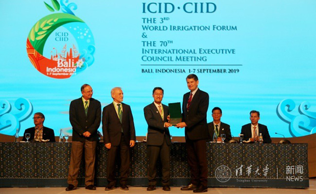 田富强副教授(左三)接受国际灌排委员会主席费利克斯·赖因得斯的颁奖