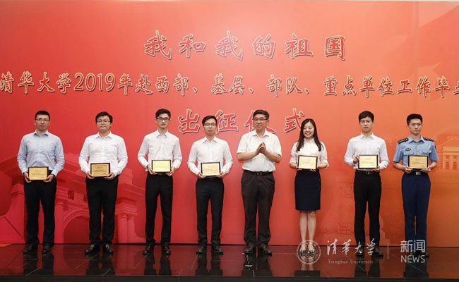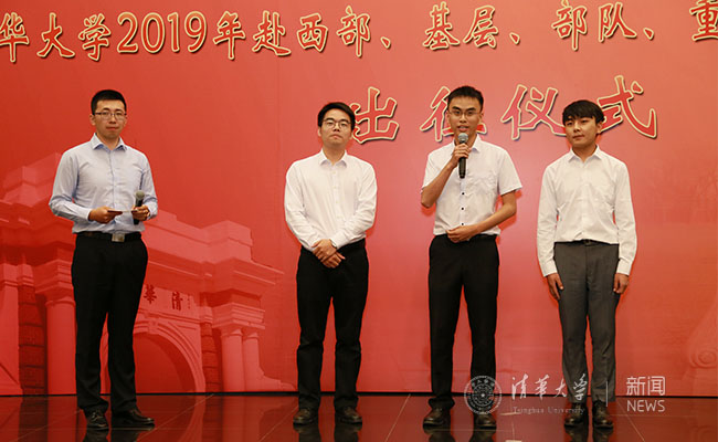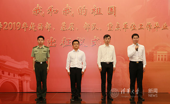 出征仪式上,电机工程与应用电子技术系博士毕业生牛涛代表学术就业的同学发言;环境学院本科毕业生王元辰代表前往国际领域工作的同学发言;法学院本科毕业生胡凯、物理系博士毕业生吴振杰等4人分别代表前往国防、军工等重点单位工作的同学发言;电子工程系博士毕业生高昕宇、航天航空学院硕士毕业生董诚等代表赴新兴战略行业毕业生发言;教育研究院硕士毕业生贺少红、水利水电工程系博士毕业生宋云天、新闻学院本科毕业生仁增顿珠等代表赴基层公共部门毕业生发言。获奖代表在发言中纷纷表达了对扎根基层、投身主流的坚定信念,和到国家战略行业一线、学术前沿建功立业的决心。