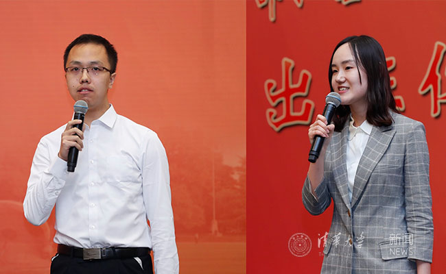 高昕宇(左)与董诚(右)作为赴新兴战略行业的毕业生代表发言