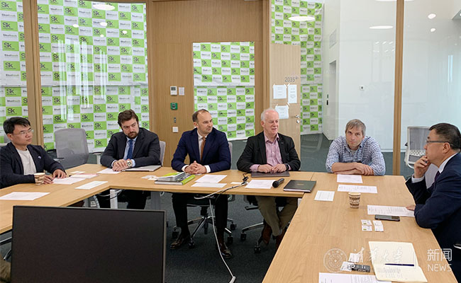 访俄期间,6月5日上午,副校长、教务长杨斌专程访问了位于莫斯科郊区的斯科尔科沃科技学院,与该校副校长亚历山大·萨甫诺夫(Alexander Safonov)、副教务长克莱门特·弗丁(Clement Fortin)以及多位研究中心负责人举行座谈,就双方可能开展的合作进行交流。