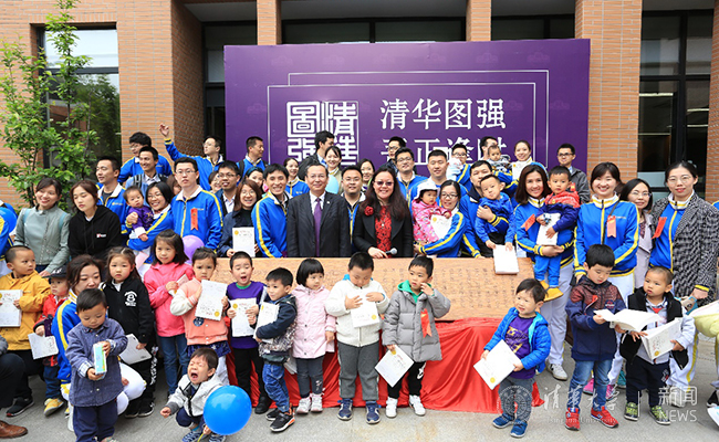 为传递清华力量和图强精神,图书馆和2005级校友选择了《从一到无穷大》一书送给到场的清华校友家庭中的小朋友们。王有强给每本书签名并写赠语—“清华图强,吾正逢时”。赠书结束后,全体嘉宾、校友和小朋友们合影留恋。随后,部分校友跟随图书馆员,参观馆舍和馆藏,了解图书馆的最新发展,为学校的未来送上深深祝福。