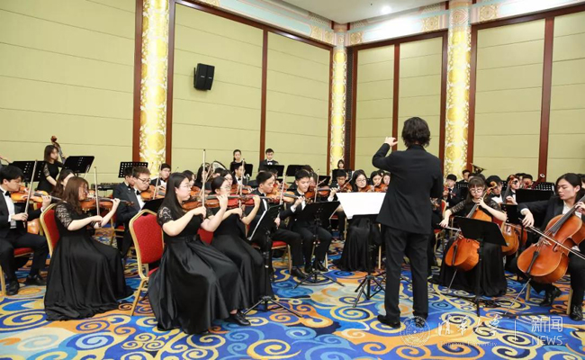 现场奏俄罗斯联邦国歌、中华人民共和国国歌,全场肃立。