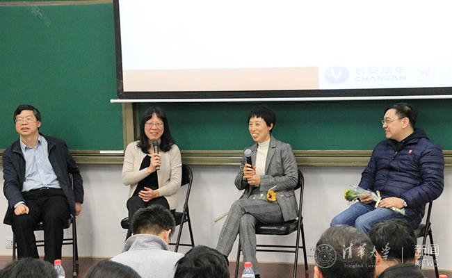 在交流环节,林希虹、谢金星、张玲和邓柯在台上进行了互动交流,并对观众提问进行了回答。几位嘉宾回忆了在清华本科阶段的学习生活,讨论了学术科研道路上需要注意保持的好奇心和脚踏实地,并分享了如何将科研过程中具体的困难和挑战转化成机遇。