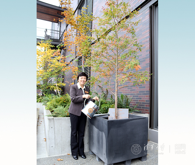 三年前,习近平主席访美时在西雅图看望全球创新学院工作人员,向刚成立的全球创新学院赠送水杉树,祝愿全球创新学院茁壮成长。此次考察全球创新学院期间,陈旭特意拿起水壶,为这棵水杉树浇灌。陈旭谈到,三年前来访此地,这里还是一片工地;三年后再来,学院已拥有自己的办学大楼。全球创新学院北美中心的创立更是有力地支持了学院的建设与发展。全球创新学院目前拥有这么多优秀的师生,他们都是清华与学院宝贵的人才资源与科技资源,也是我们稳步发展的良好基础。陈旭希望大家共同努力,共同推动全球创新学院发展成为享誉世界的品牌。