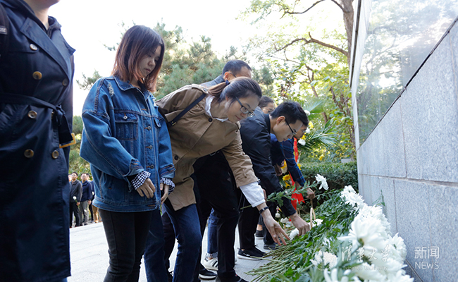 在雄壮的国歌声后,全体师生肃立,向清华英烈以及千千万万为国捐躯的英雄儿女们表示深切哀悼。