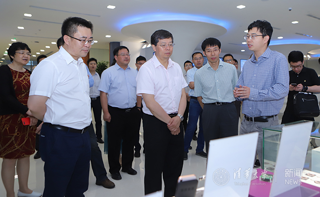 邱勇校长一行参观了研究院科研成果展示厅,并与青年人才面对面交流。