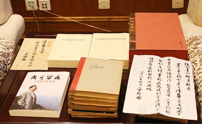 在随同捐赠资料致党委书记陈旭、校长邱勇的信中,吴邦国深情写道:“今送上清华念书时学习笔记及《论经济社会发展》《人大工作》《邦国擬古》,请查收。感谢你们多次探望,使我感受到母校的温暖。”
