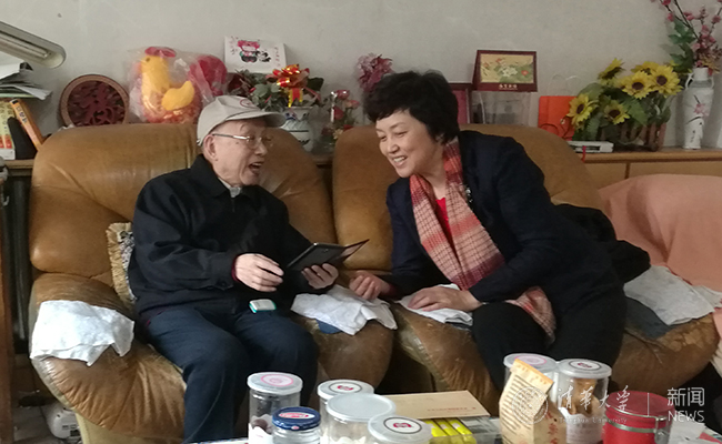 陈旭看望老校长张孝文。记者 张帆