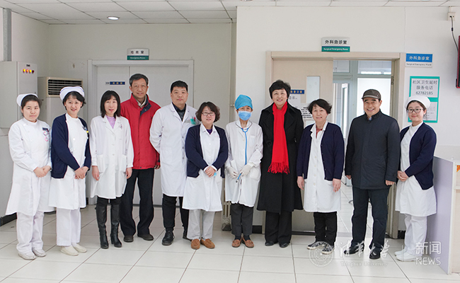 看望校医院值班医护人员。记者 张帆