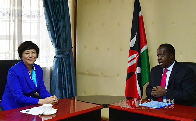 与肯尼亚高等教育委员会主席查查会谈后合影。石哲 摄