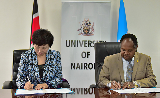 陈旭与内罗毕大学校长彼得·姆比希签署合作备忘录。石哲 摄