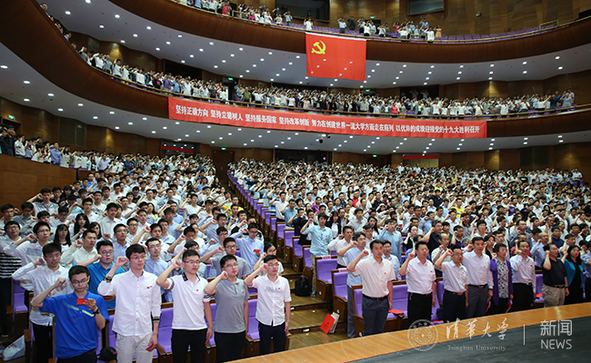 在校党委副书记史宗恺带领下,过去一年入党的新党员面向鲜艳的党旗庄严宣誓,与会的老党员们也一同重温入党誓词。