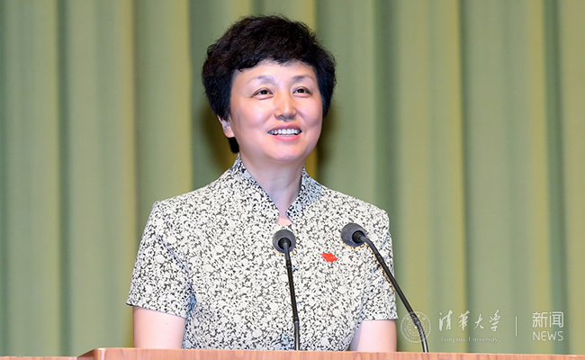 陈旭在大会讲话中指出,清华党组织从1926年建立第一个党支部至今,已经走过了91年的光荣历程。党组织在历史上始终是推动学校发展的坚强领导核心,广大党员始终走在学校事业的最前列。受到表彰的集体和个人,是全校1249个党支部、27719名党员中的优秀代表。在他们当中,先进党支部围绕中心开展工作,密切联系、服务群众,充分发挥了战斗堡垒作用;优秀共产党员以身作则、奋发有为,充分发挥了先锋模范作用;优秀党建与思想政治工作者和党支部书记勇于担当、甘于奉献,充分发挥了骨干带头作用。她希望先进集体和个人珍惜荣誉、再接再厉,希望全校基层党组织和党员学先进、赶先进、创先进,为党和人民的事业、为学校改革发展再立新功。