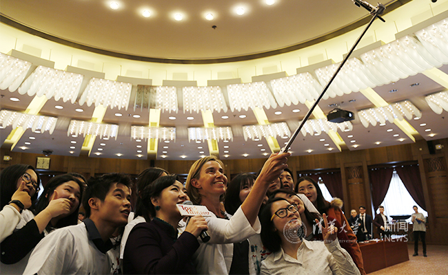 莫盖里尼女士与清华同学自拍留念。记者 张宇