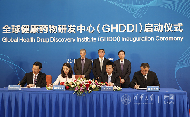 随后,隋振江、邱勇、比尔·盖茨、丁胜为全球健康药物研发中心进行揭牌,并共同见证PPP项目协议的签约。