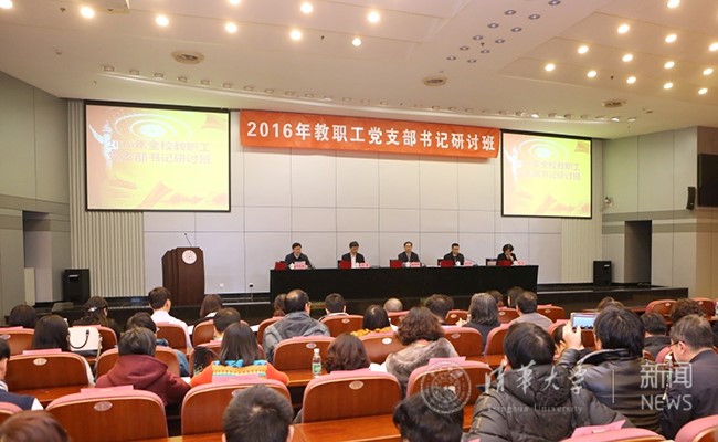 姜胜耀代表学校党委对广大教职工党支部书记的辛勤付出表示衷心感谢。他回顾了学校开展“两学一做”学习教育和基层党组织党员队伍建设的总体情况,贯彻“全面从严治党”的整体要求,对进一步做好支部建设提出了三个方面要求:一是进一步加强和规范党支部的党内政治生活,增强党内政治生活的政治性时代性原则性战斗性。二是建立健全党群联系机制,抓好青年教职工特别是海归青年教师的思想政治工作,着力加强政治引领和政治吸纳;引导教职工党员以新时期“四讲四有”合格党员标准要求自己,在教书育人、管理育人、服务育人等全员全过程全方位育人机制上发挥表率带头作用。三是充分发挥教职工党支部的坚强堡垒作用,自觉支持改革、参与改革、服务改革,形成并固化一些行之有效的工作载体,为学校改革发展做出更大的贡献。
