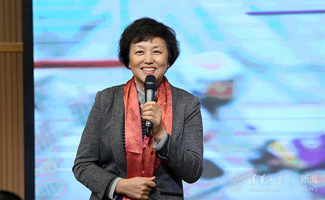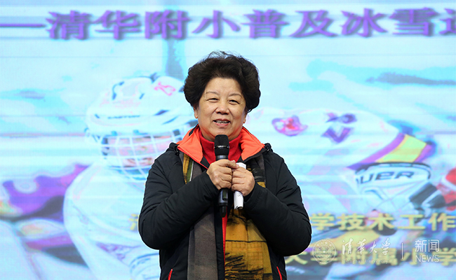 清华附小校长窦桂梅介绍了附小开展迎接冬奥会的系列活动,及清华附小冰球队的体育精神。