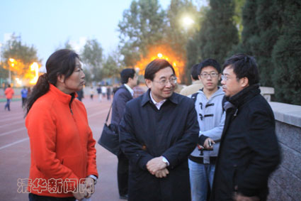 清华新闻网11月1日电 (研通社记者 张 旭)10月24日下午,校党委书记胡和平、副书记史宗恺来到紫荆操场,调研学生参加“阳光长跑”锻炼活动及场地设施的情况。