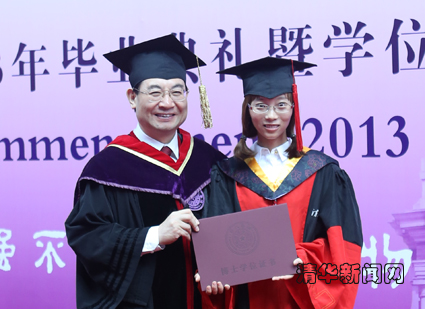 图为陈吉宁校长向毕业生授予学位。记者 智 斐