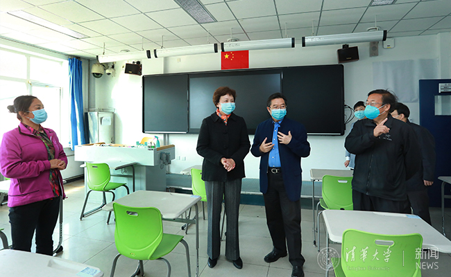 在检查调研过程中,附中校长王殿军介绍了附中为毕业班学生返校学习采取的一系列具体措施。接到北京市教委试开学通知后,根据安排附中第一时间部署高三学生返校工作,全面准备,做好各种预案,确保疫情防控和试开学工作万无一失。