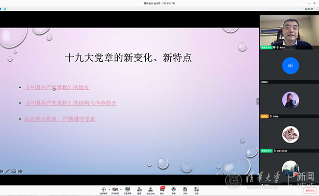 图书馆党委书记蒋耘中为学员们系统讲解了十九大党章的地位、结构与内容,强调党章是党的根本大法,是全党必须遵守的总规矩,希望全体学员认真学习党章,严格遵守党章,把党章各项规定落实到行动上、落实到各项事业中。