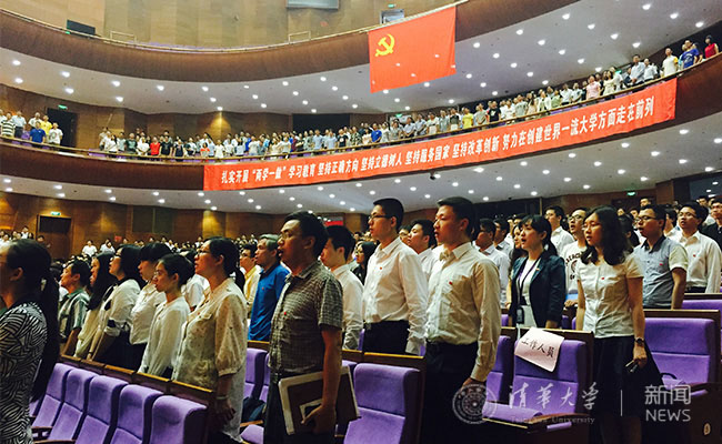 中国共产党成立95周年暨纪念清华党组织建立90周年大会上全体师生共唱《国际歌》。