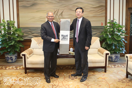 图为陈吉宁向阿肖克·康特先生赠送纪念品。记者 智 斐 摄