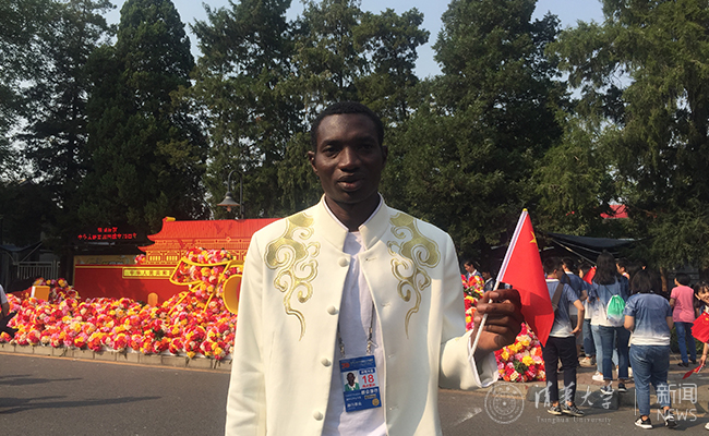 清华新闻网10月1日电(记者 李晨晖)来自非洲贝宁的王吉是土木系博士二年级的学生,作为第三大队302中队的一名队员参加了国庆群众游行活动。谈到自己作为国际学生参与国庆盛典,他激动地说:“在天安门参加活动,我特别开心,也特别自豪!”