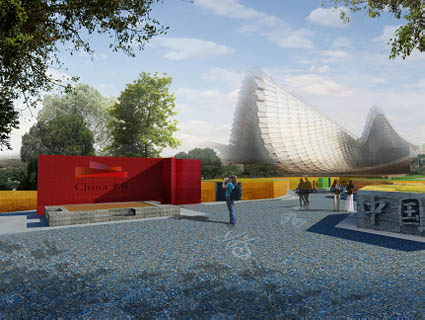 图为2015年米兰世博会中国馆入口处景观节点透视效果图。