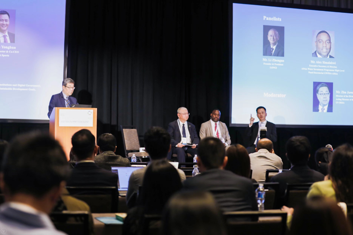 在随后的“应对三重地球危机,工商界在行动”主题论坛上,隆基绿能创始人、总裁李振国,安踏集团执行董事、联席首席执行官吴永华,全球水伙伴南部非洲委员会非洲水资源投资项目高级别工作组秘书处主任亚历克斯·西马拉比(Alex Simalabwi参与对话。该主题论坛由联合国经济和社会事务部公共机构和数字政府司司长、联合国经济和社会事务部可持续发展目标司代理司长朱巨望主持。