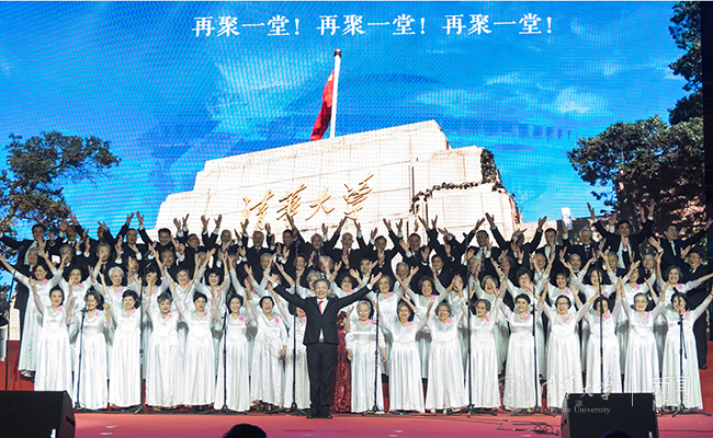 上海校友会艺术团为我们带来歌曲《我爱你中国》《祖国不会忘记》与《清华校友歌》三首曲目,平均年龄74岁的他们,唱出了清华人以身许国的丰功伟绩,唱出了老一辈清华人的岁月沧桑,唱出了清华师生的家国情怀。