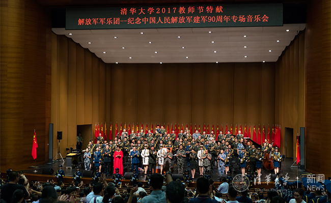 当晚演出开始前,指挥张海峰副团长动情地说:“今年是中国人民解放军建军90周年,而明天是第33个教师节。今晚我们来到清华,用一场音乐会共同庆祝这两个节日,以表达我们对人民教师和共和国军人们的敬意!”